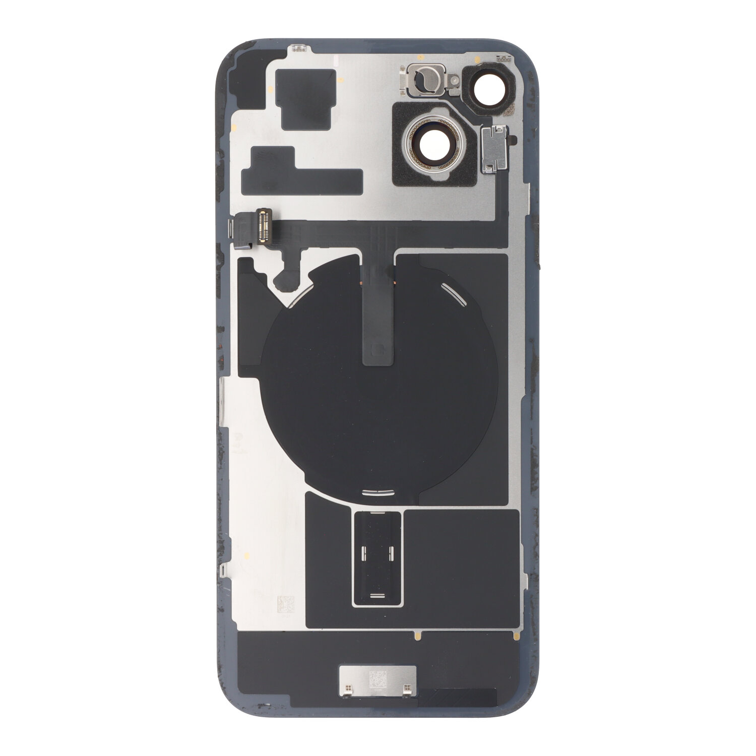 Apple iPhone 15 Plus This is only the backcover glass plate, it’s not the complete backcover/housing. – Pulled – Grade B – With Flash Light Flex + Magsafe Magnets + Wireless Charging Flex – Black –