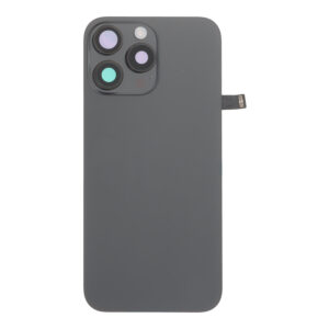 Apple iPhone 16 Pro Max This is only the backcover glass plate, it’s not the complete backcover/housing. – With Camera Frame + Iron Plate + Wireless Charging Flex + Flash Light Flex – Black