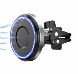 Fully compatible with MagSafe-equipped iPhones and other smartphones using a MagSafe-compatible ring. Simply place your phone on the holder and it locks into place firmly, even on bumpy roads.
