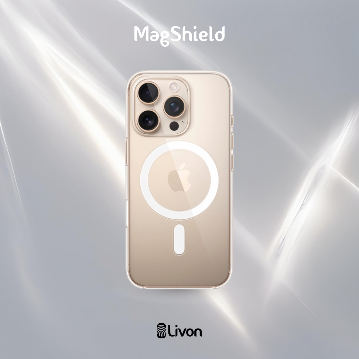 Livon iPhone 17 Pro Livon MagShield case made of flexible plastic materials with shock-resistant edges. Built-in MagSafe function, makes you easy to use MagSafe products. The case is custom made for your smartphone, so the ports are fully accessible and all buttons are easy to operate. – Transparant