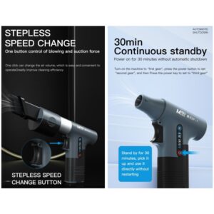 - 100,000 RPM turbine motor offer super suction and strong blowing force