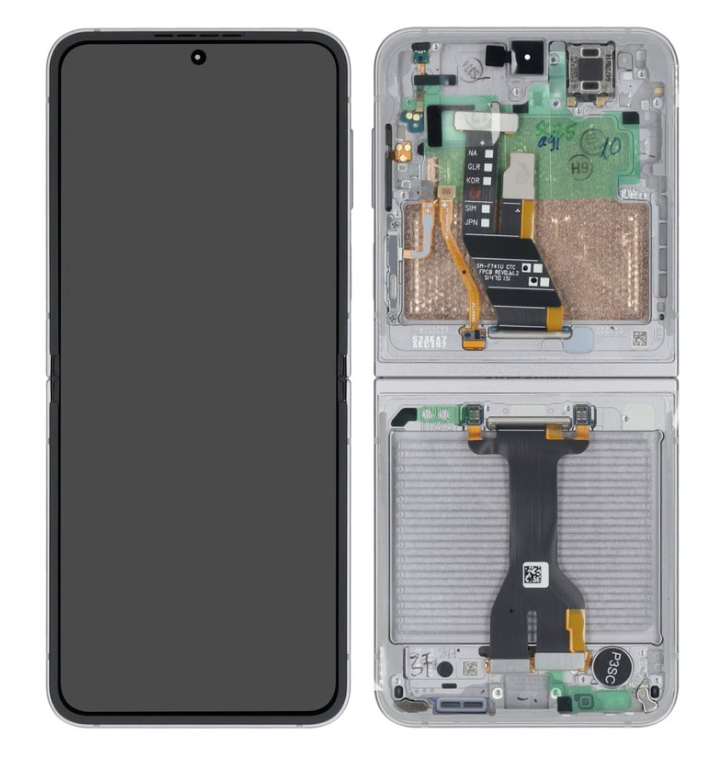 Samsung SM-F741B Galaxy Flip 6 LCD Display including Touchscreen/Digitizer and Frame Assembly Complete – GH82-35014A/GH82-35013A – Silver