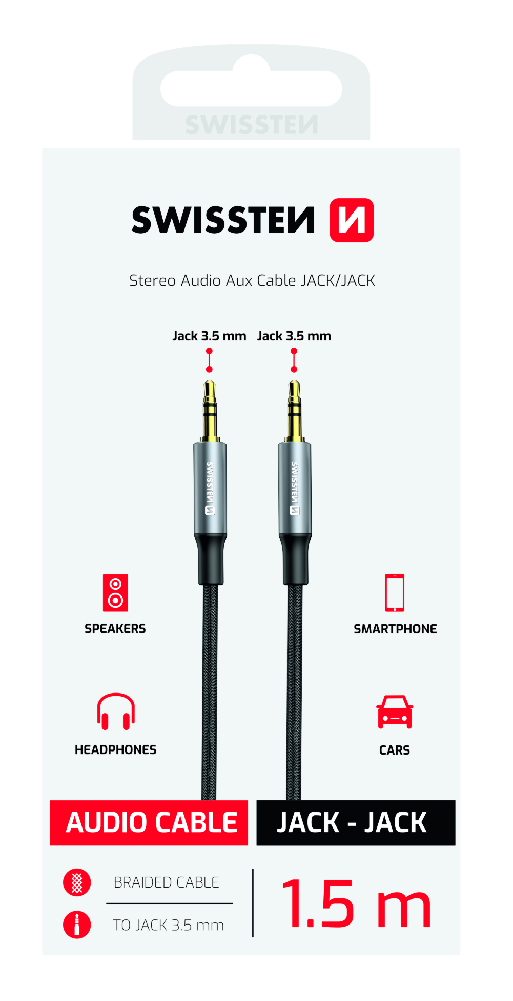 The audio cable Swissten Textile JACK (male) / JACK (male) 1.5 m black is an ideal choice for connecting various audio devices such as headphones, speakers, or car stereos. With a length of 1.5 meters, this cable offers enough flexibility for convenient use at home, in the car, or on the go. Thanks to the textile braiding, the cable is not only stylish but also resistant to wear and tear, which guarantees a long service life.