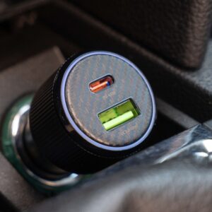 A powerful and elegant car charger supporting PD 3.0 and QC 3.0 fast charging.