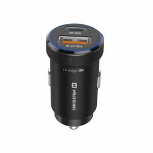 Swissten Dual USB-C & USB-A Mini Car Charger (20W) – 20111907 – With USB-C Cable – Black