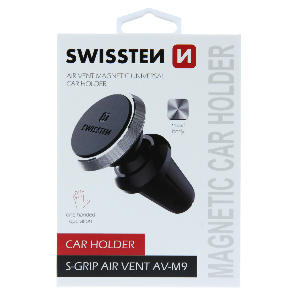 Metal-magnetic car holder in an elegant, decent design. It has 6 magnets for better phone security. The rubberized surface protects the phone from scratches and prevents the phone from slipping. The joint makes it possible to rotate in the desired direction. Fixed grip jaws secures the holder against the ejection of the grid. Packed in SWISSTEN blister.