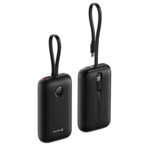 Looking for a high-quality compact power bank that eliminates the hassle of carrying multiple cables? The SWISSTEN VOLTBOX 35W 10,000 mAh power bank is designed for modern users who need to charge multiple devices simultaneously. It comes with integrated USB-C and Lightning cables, ensuring you’re always prepared.