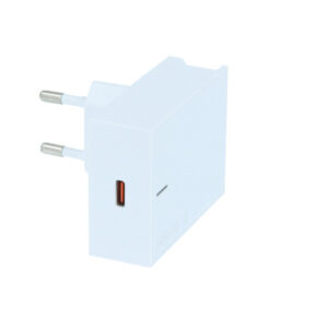 Unique SLIM travel charger with USB-C output, 45W power and POWER DELIVERY technology (for charging iPhone 8 and newer, iPads, Macbooks). You can use the smartphone stand on the top of the charger. Packed in SWISSTEN retail packing.