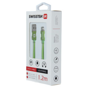 High quality textile data cable USB / Lightning with length of 1,2 m. The cable reinforced to deliver a higher current (up to 3A) and can handle fast 480 Mb/s data transfer. Packed in Swissten retail pack.