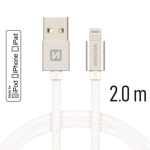 Swissten Textile MFI Lightning Cable – 71524303 – 2m – Silver